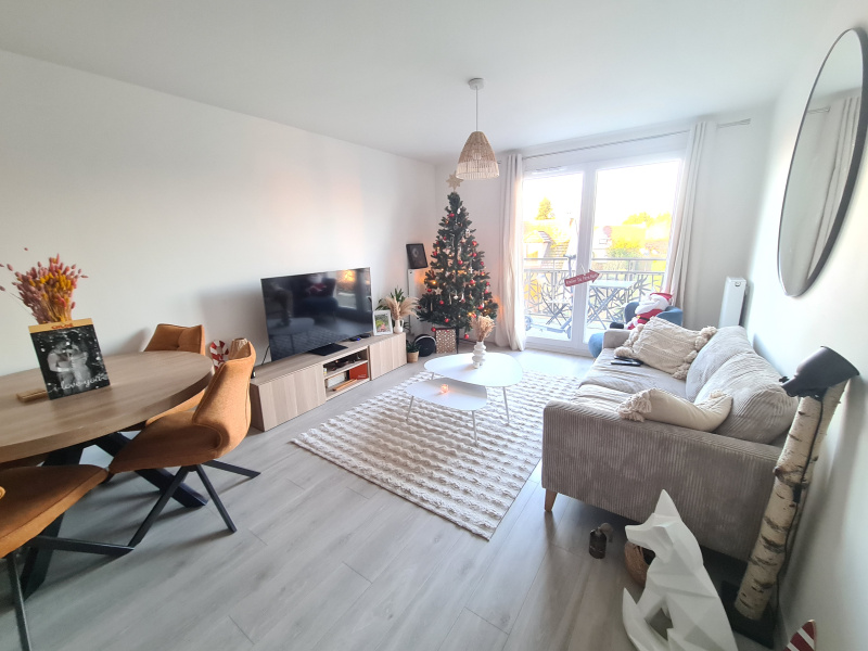 Résidence Standing récente, appartement 3 pièces : coin-cuisine aménagé, Plaques, hotte, séjour, balcon, 2 chambres, salle de bains, rangements