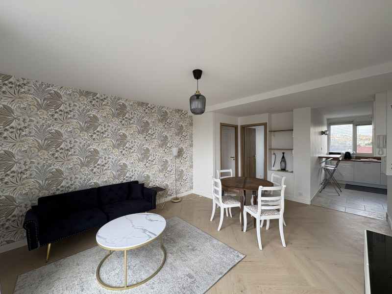 20' RER Massy Palaiseau, résidence au calme, Appartement 3 Pièces MEUBLÉ, entièrement rénové, il comprend: cuisine équipée, (plaques, hotte, four, frigo / congélateur) micro ondes, lave linge), séjour avec balcon (belle vue dégagée), 2 chambres avec rangements, salle d'eau, rangements, wc indépendant.
