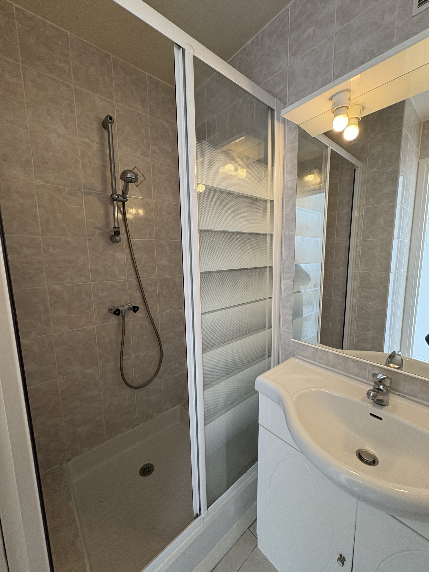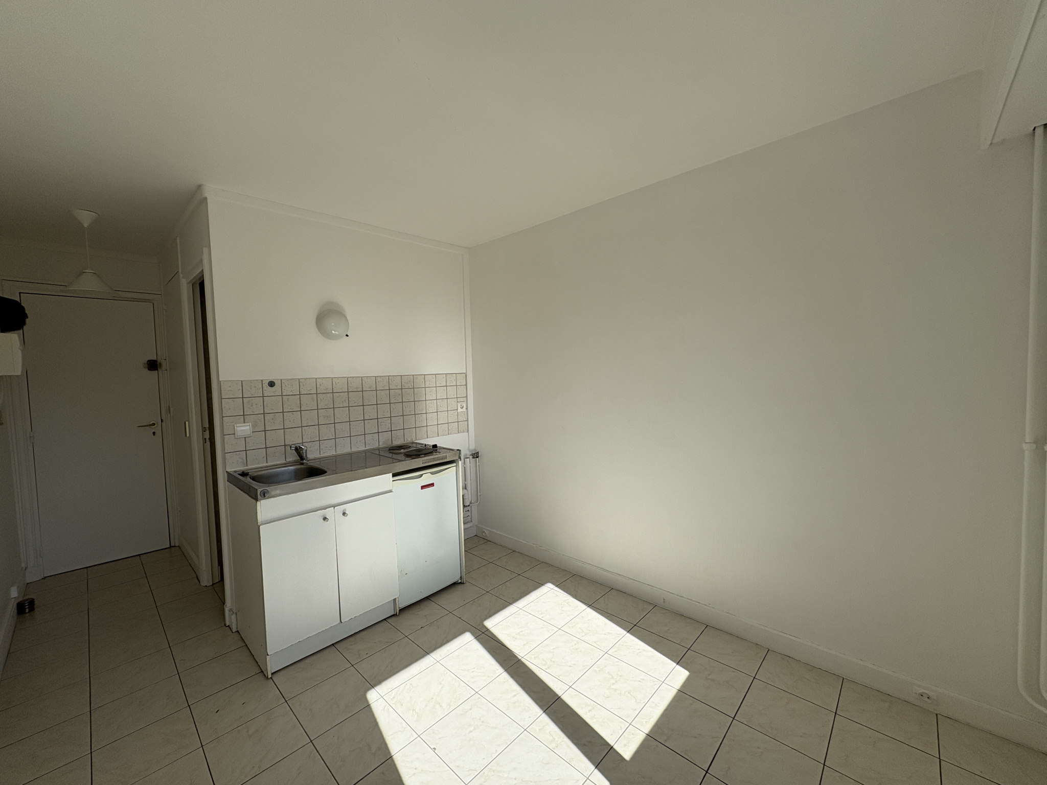 5' RER palaiseau - Villebon , résidence standing, studette comprenant coin-cuisine équipé (plaque, frigo), séjour, salle d'eau, wc commun sur le pallier.