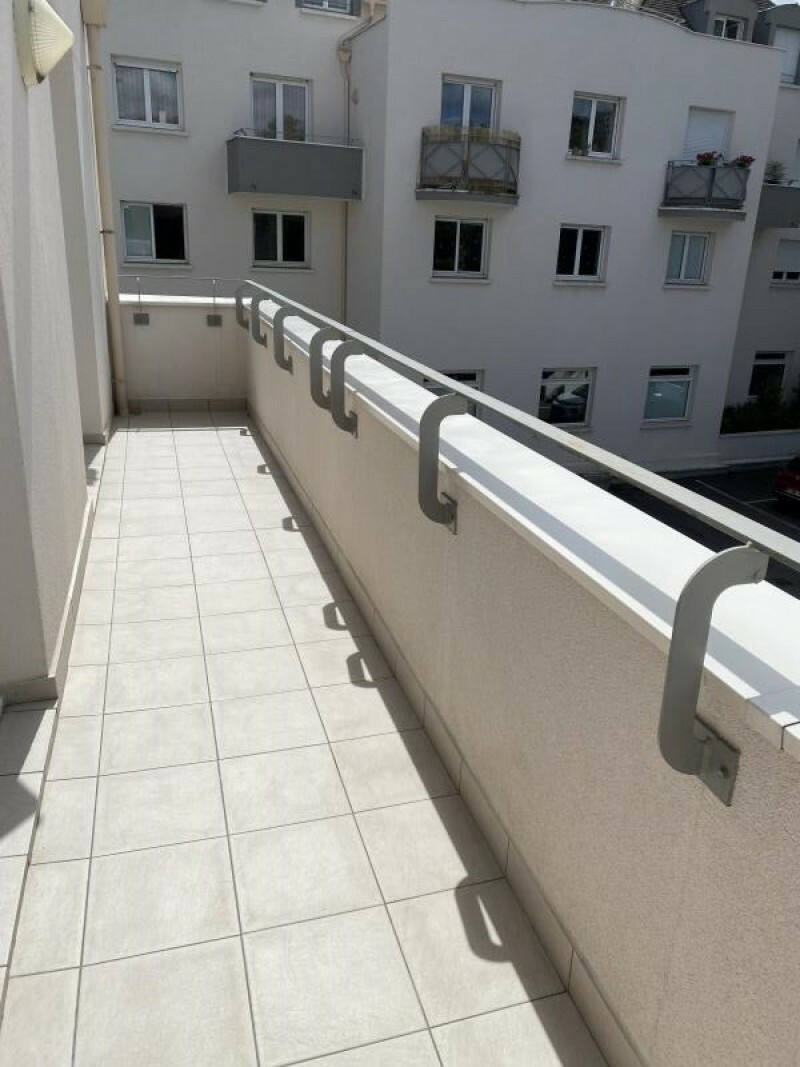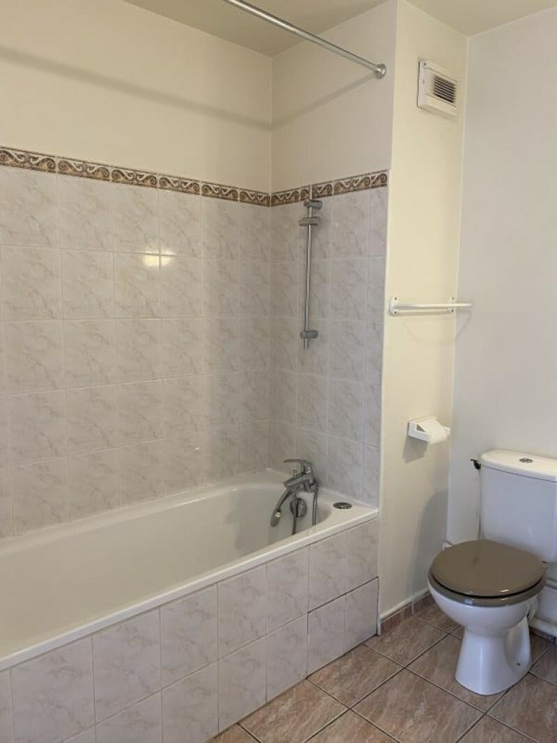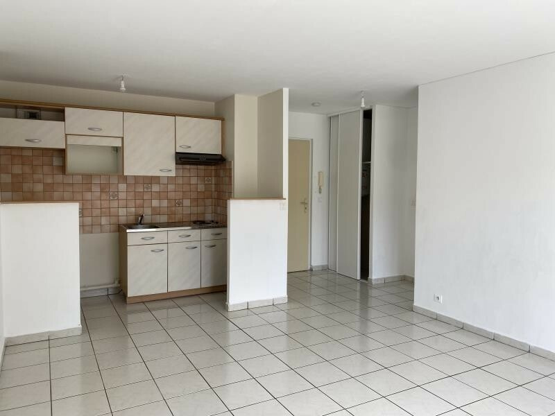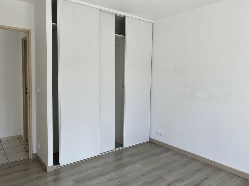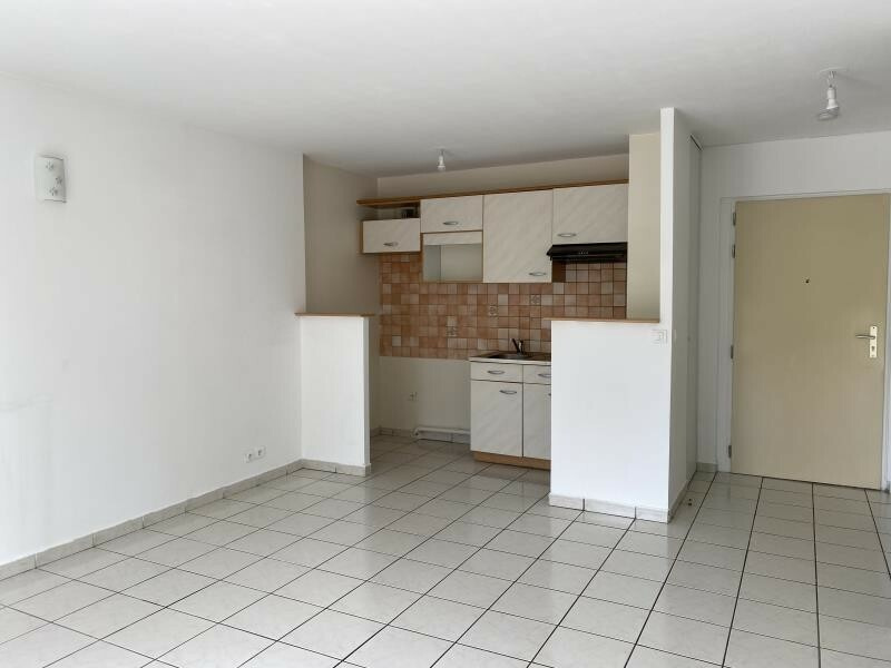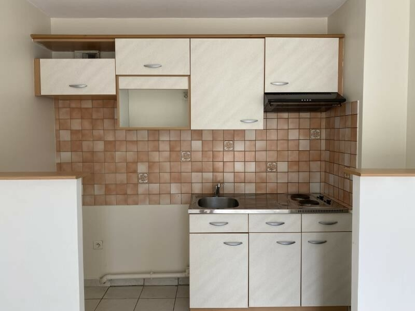 8' RER, résidence récente avec ascenseur, Appartement 2 Pièces comprenant : entrée avec rangements, coin-cuisine aménagé (plaques, hotte), séjour, balcon, chambre avec rangements, salle de bains avec wc.