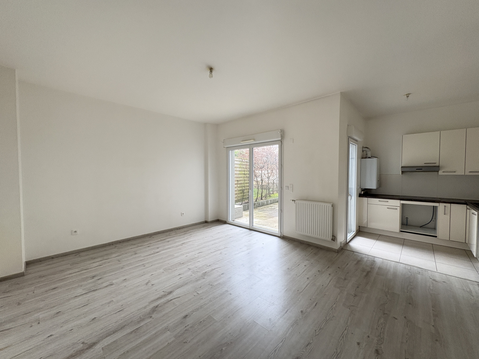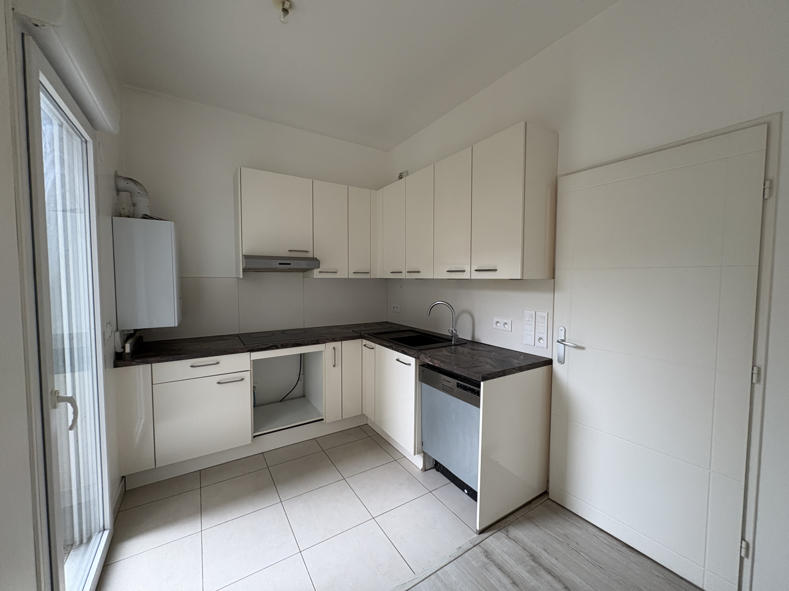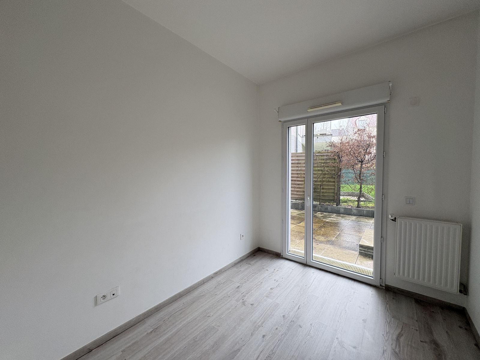 5' RER et centre ville, résidence standing récente, appartement 4 pièces en rez de jardin comprenant : entrée avec rangements, coin-cuisine aménagé (plaques, hotte), séjour, terrasse, jardinet, 3 chambres, salle de bains avec wc, Wc indépendant.