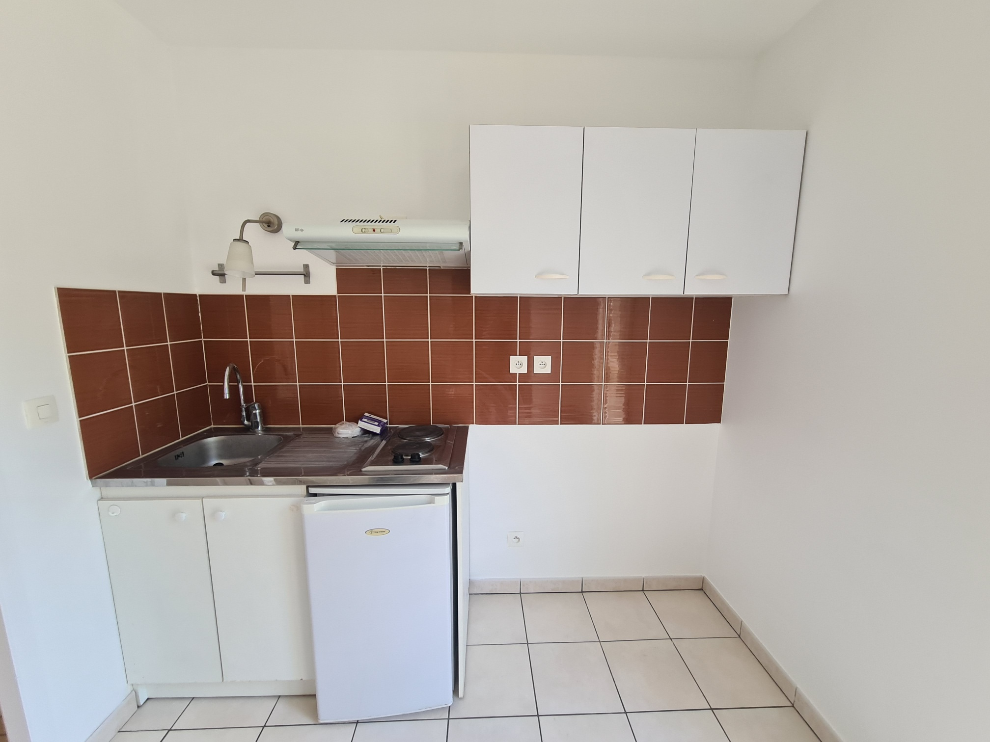 15' RER Palaiseau Villebon , Résidence standing récente, studio comprenant : coin-cuisine aménagé (plaques, hotte, frigo), séjour, rangements, salle d'eau avec wc