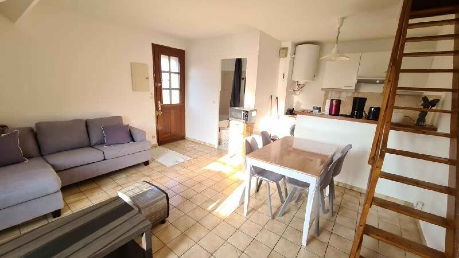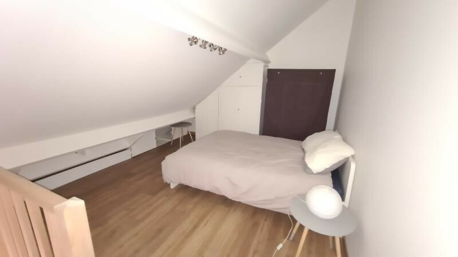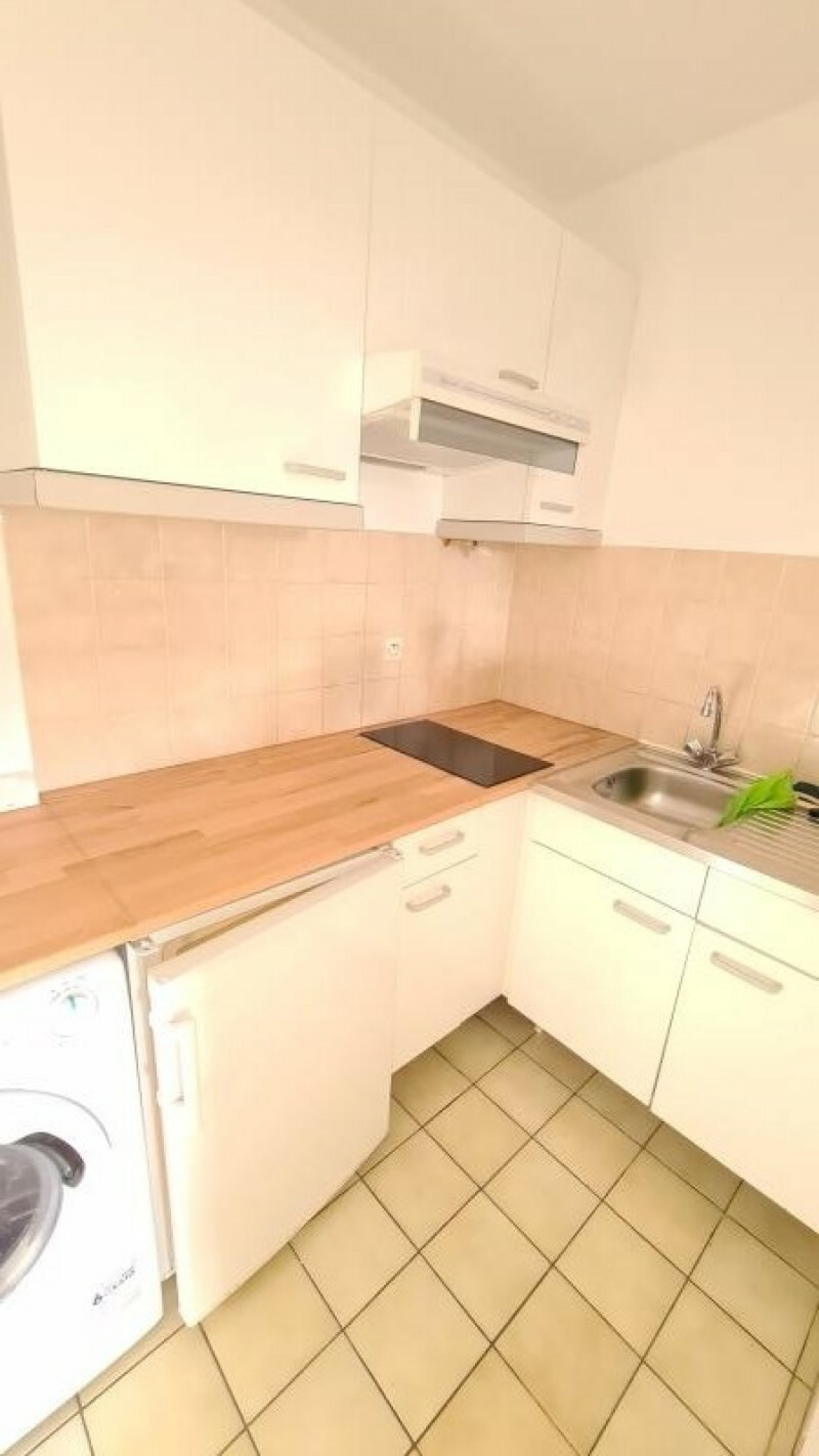 13' RER et centre ville, petite résidence au calme, Studio Meublé comprenant : coin - cuisine équipé (plaques, hotte, four, frigo, lave linge), séjour, salle d'eau, chambre en comble sans fenêtre.