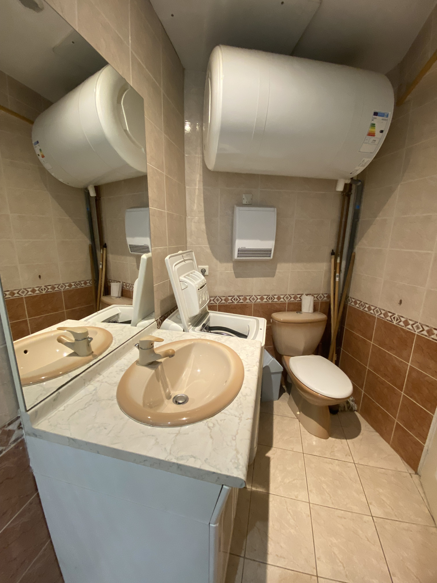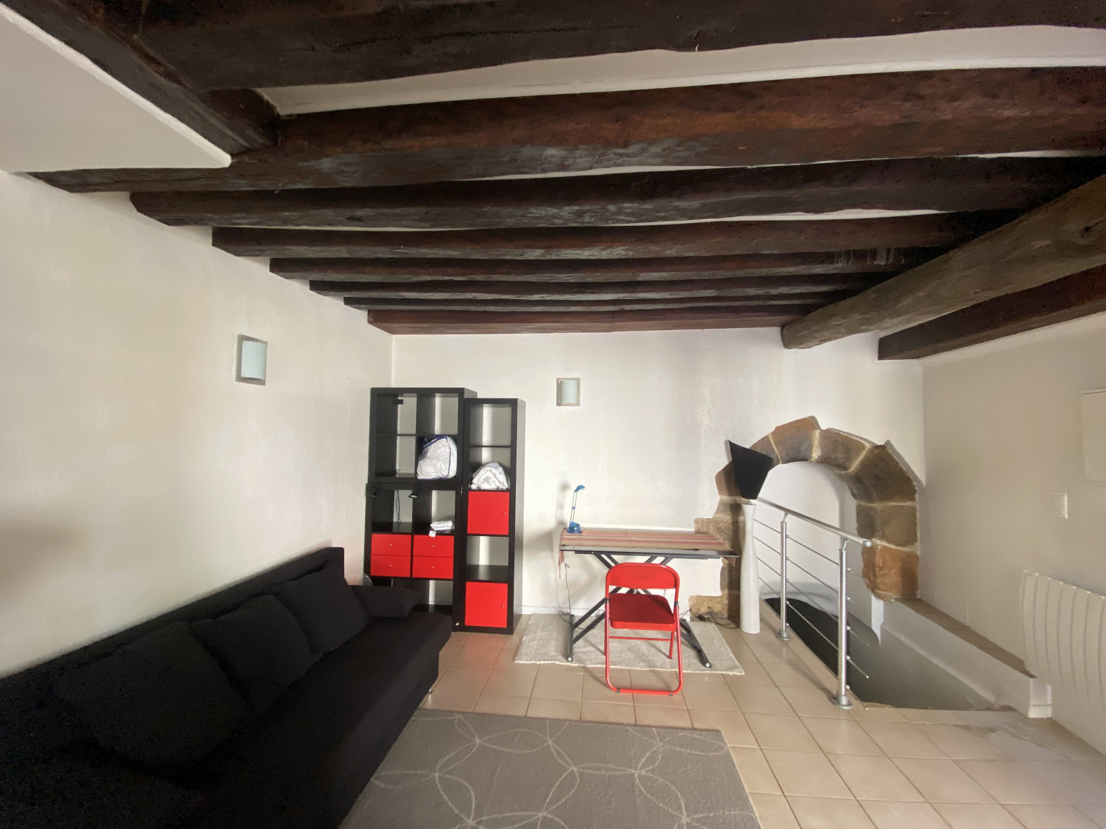 7' RER, CENTRE VILLE, Petit immeuble ancien, STUDIO MEUBLE : coin-cuisine aménagé (plaques, hotte), séjour, salle d'eau.